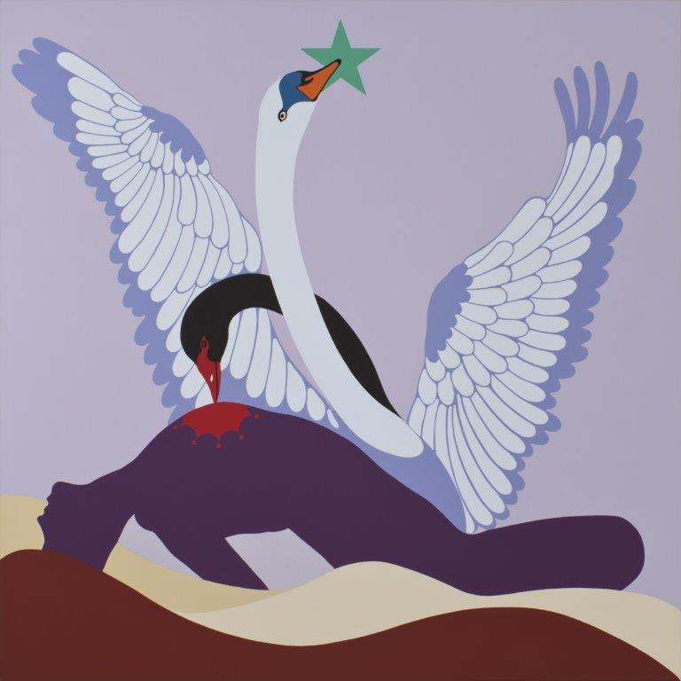 Le cygne blanc, toutes ailes déployées, ne peut s'envoler vers sa réalisation, empêché qu'il est par le cygne noir, symbole des passions infernales.